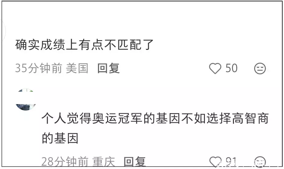 苏翊鸣和朱易的感情一开始没多少人看好,但老老实实谈了4年还是令不少人改观,如今传出分手多少有些遗憾。分手传出后,不少网友根据两人的家世和成绩开始了比较,有的认为女方的体育成绩够不上男方,有的则认为女方父亲的智商家世比苏翊鸣好太多,两者不匹配。尴尬的是有关朱易是关系户的言论又开始蔓延,开启了新一轮的媚富媚权讨论。
