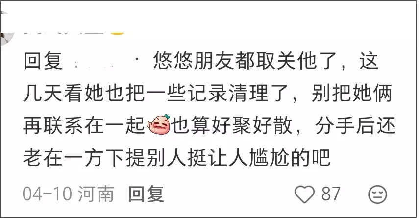 结合两人过往吵架女方单向取关,和好又重新关注的互动来看,不少网友认为这一次是真闹掰了。